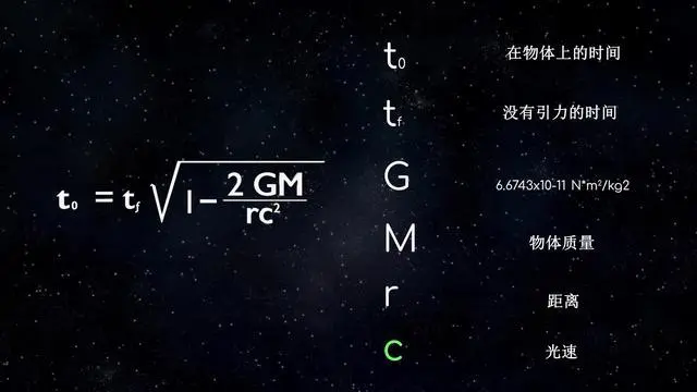 公式解读:M越大、r越小(即越靠近大质量天体),该项越接近 1,t'越接近 0,时间流逝越慢。