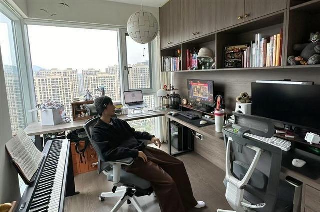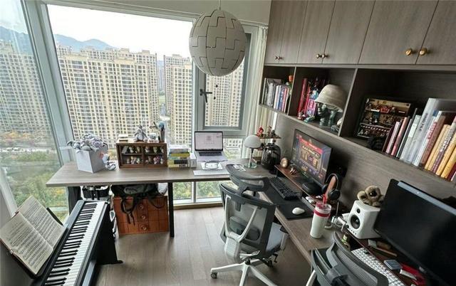 这个U形工作间的设计理念追求舒适和实用。双人书桌的设置使得夫妻俩能够更好地共同工作,增进感情。而另一侧的琴架则为他们提供了一个轻松愉悦的休闲空间。整个工作间的设计体现了现代都市人追求高品质生活的理念。