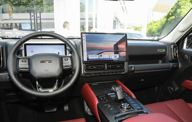 哈弗H9穿越版的座舱内采用了大面积软性材质的铺陈,黑红、黑棕、黑灰的撞色对比,不仅更有层次感,还加入了造型别致的空调出风口,大量优雅流畅的线条,也提升了整车的高级感。中控台采用了平直的中控台线条,配备了四辐式多功能方向盘,操控岛采用了飞机换挡手柄,两侧还保留了大颗粒物理按键,后方还带有圆形的金属旋钮,依旧还是大家熟悉的感觉。科技感方面,该车配备了14.6英寸中控屏、10.25英寸的彩色液晶仪表,科技感十足。车内配备的沙发座椅支持加热/通风功能,舒适感提升了好几个档次。