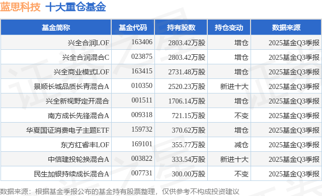 重仓蓝思科技的前十大公募基金请见下表: