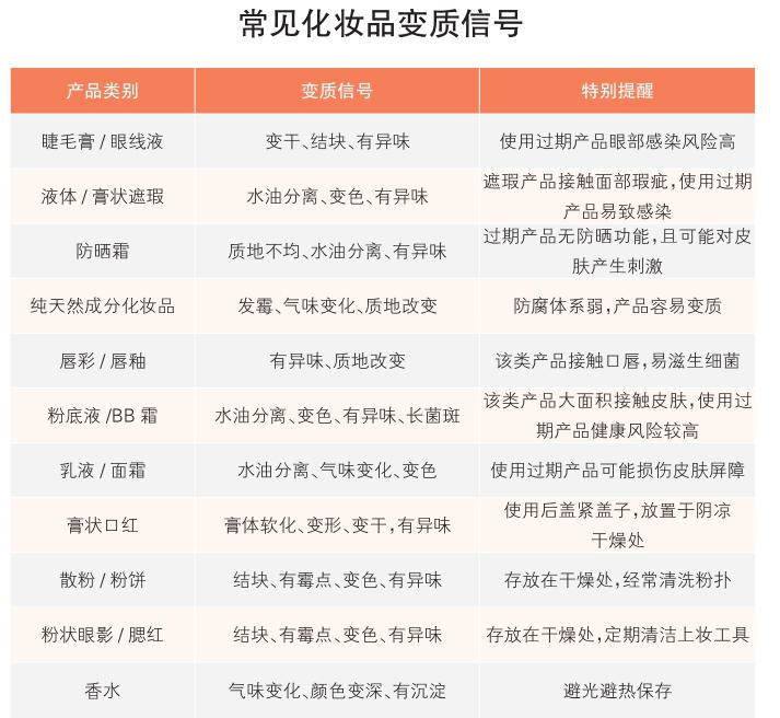 化妆品一旦出现上述四方面的变化,通常意味着已经变质,应立刻停止使用。