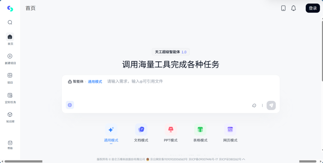 在阿里之前,昆仑万维发布天工超级智能体,打出“AI版Office”的旗号,其内置的专家智能体可以一键生成专业的文档、PPT和表格。
