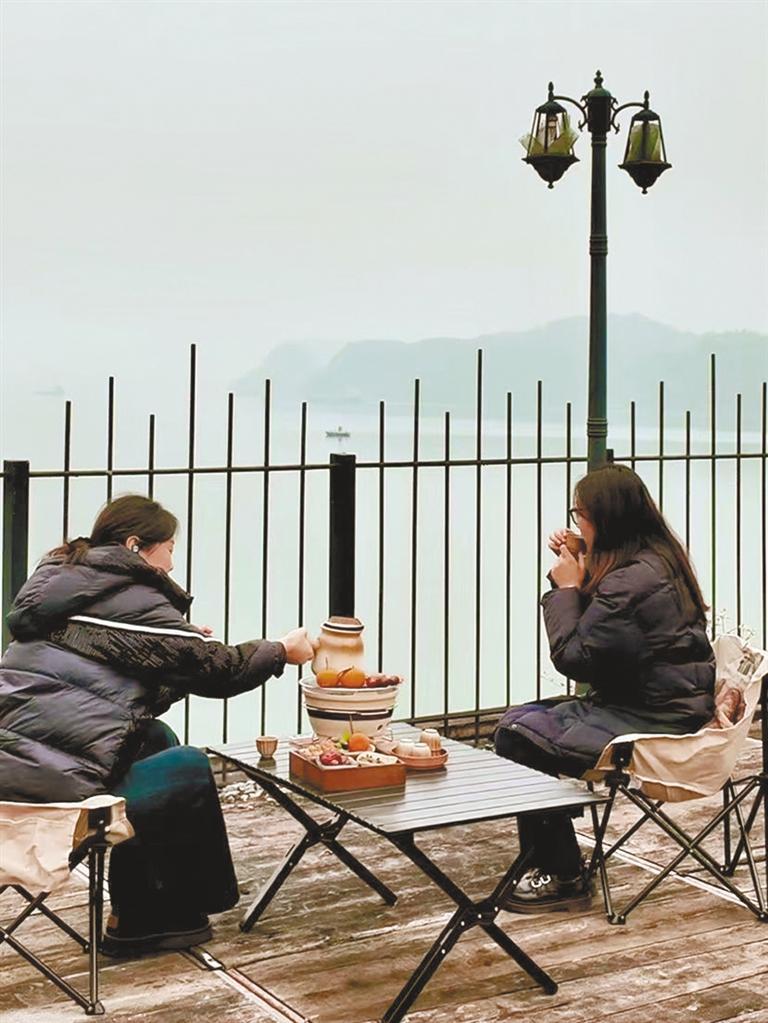 凭栏远眺,江天一色的美景尽收眼底,耳畔是轻柔江风,身前是炭火暖心。白茶、普洱等香茗在壶中缓缓舒展,茶香袅袅萦绕鼻尖,搭配精致茶点与新鲜水果,构成一幅治愈的冬日画卷。重庆晚报通讯员 杨孝永