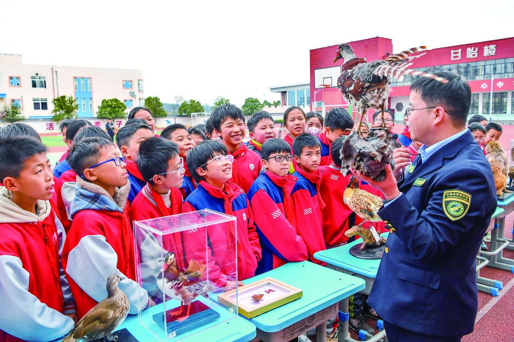 12月5日,宜丰县第七小学开展自然教育科普活动,官山国家级自然保护区管理局工作人员携野生动物标本进校园,向学生讲解不同种类动物的生活习性、栖息环境和保护级别等知识。