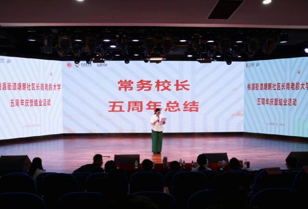 近日,深圳市南山区桃源街道塘朗社区长青老龄大学五周年庆暨结业活动在桃源街道文体站举行,以“银龄逐梦绽芳华”为核心主线,涵盖文艺汇演、成果展示、表彰颁奖等多个环节。