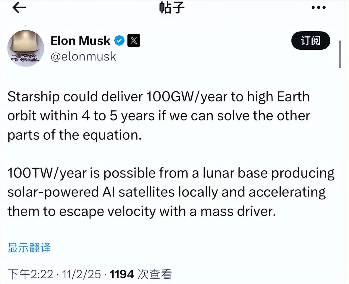 近期,英伟达孵化的Starcloud-1卫星、谷歌“太阳捕手计划”、中国国星宇航“星算计划”的密集落地,标志着太空算力从概念验证迈入实战化部署阶段。马斯克更是在X上表示,SpaceX将扩大Starlink V3卫星规模,着手在太空建设数据中心,应对AI时代算力资源不足的问题。
