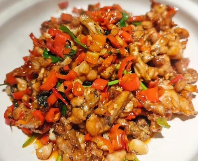 第二个菜是香辣牛蛙,江西人很喜欢吃牛蛙,这也是丈母娘的拿手菜,这道菜选用新鲜的牛蛙,搭配大量的辣椒、花椒、姜蒜等调料,通过爆炒的方式,将牛蛙的鲜嫩与辣椒的香辣完美融合。