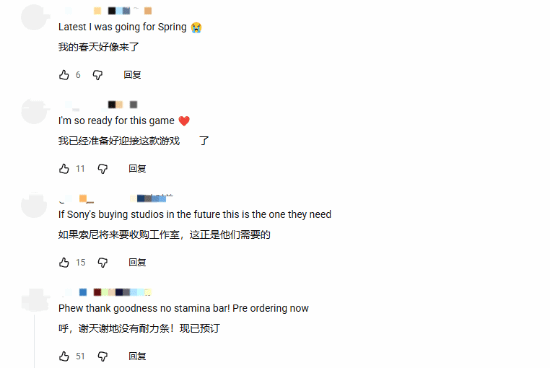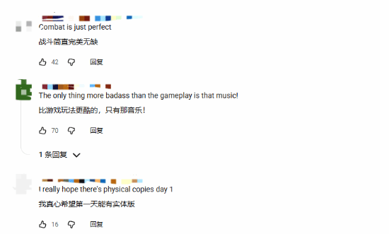 对此油管网友发文表示:“战斗动作干净利落,很酷。”“要说比战斗更好的,必须是音乐。”“我的春天来了,一点也等不及了。”可见在新宣传片后,广大外国玩家对《影之刃零》的热情。
