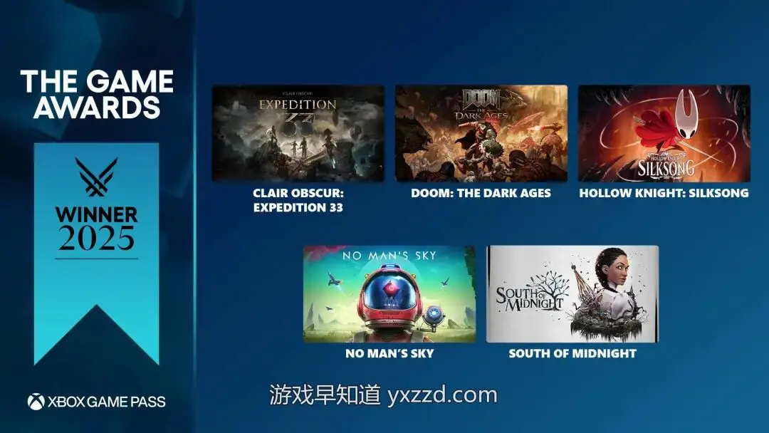 Xbox 游戏工作室与 Bethesda Softworks 旗下多款作品在 2025 年游戏大奖中获得多项提名,包括《宣誓》《毁灭战士:黑暗时代》《夺宝奇兵:古老之圈》《忍者龙剑传 4》《午夜之南》以及《天外世界 2》——我们欣喜地看到《毁灭战士:黑暗时代》荣获无障碍创新奖,《午夜之南》则斩获社会影响力游戏奖项。同时,我们的许多第三方合作伙伴也收获了多项提名与奖项,包括《光与影:33号远征队》《空洞骑士:丝之歌》和《ARC Raiders》。