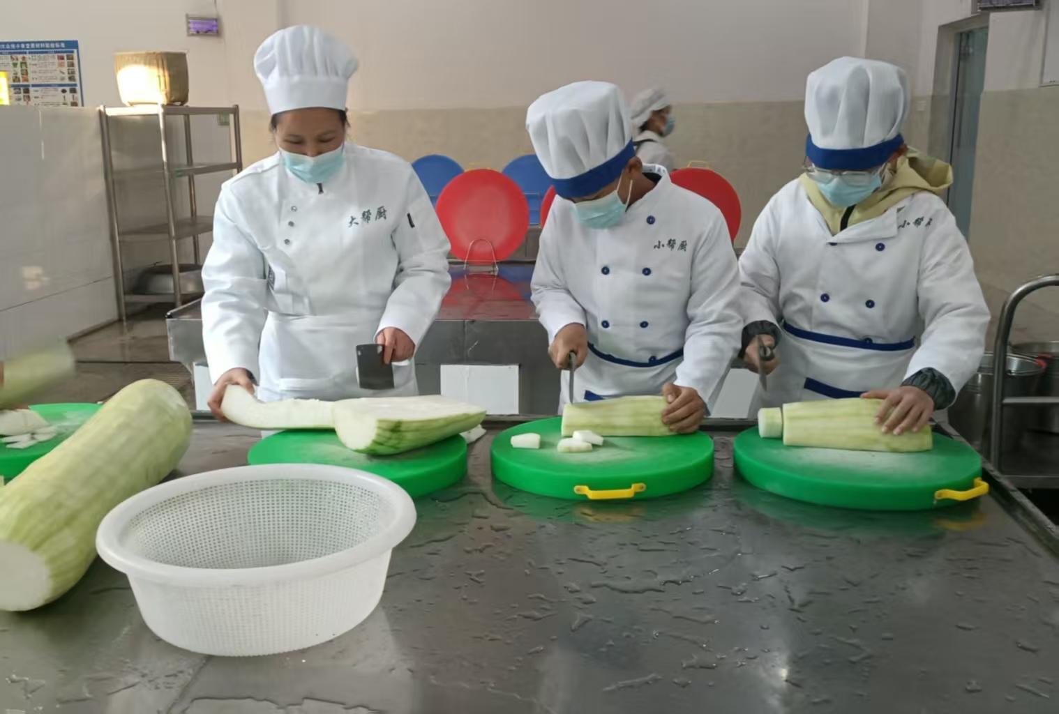 切配环节考验着技巧与耐心。食堂师傅亲自示范刀具正确使用方法及食材切配标准,学生们全神贯注学习要领,小心翼翼按规范操作。在大家的共同努力下,各类蔬菜、肉类被切成整齐的块状、丝状,整齐摆放在案板上,宛如一幅色彩斑斓的劳动画卷。