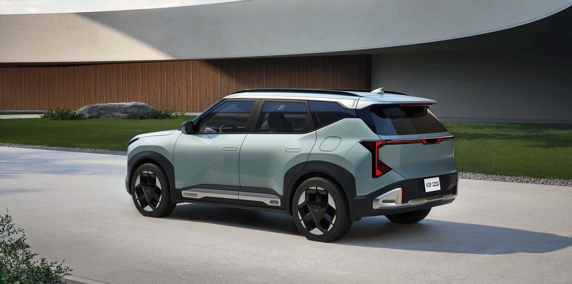 车身侧面采用悬浮式车顶设计,并安排了隐藏式门把手。与旗舰SUV EV9一样,新一代赛图斯也有着趋近于方盒子的外观特征,尾部采用贯穿式尾灯设计,狭长的灯带勾勒出尾部轮廓,下方有着巨大的后杠设计,两侧还有几何形状的银色装饰,看上去给人一种厚实坚固的视觉感。