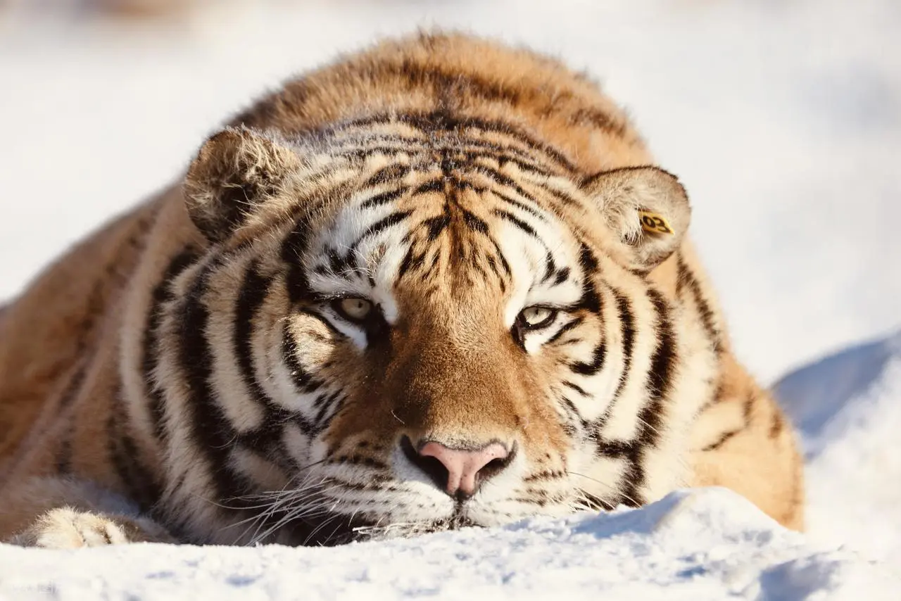 毛色也是保温的关键,相比热带亲戚的鲜艳橙黑条纹,西伯利亚虎的毛色更淡且条纹稀疏。浅色毛发吸收阳光的效率更高,当它趴在林间空地晒太阳时,毛发如同太阳能板将光能转化为热能。