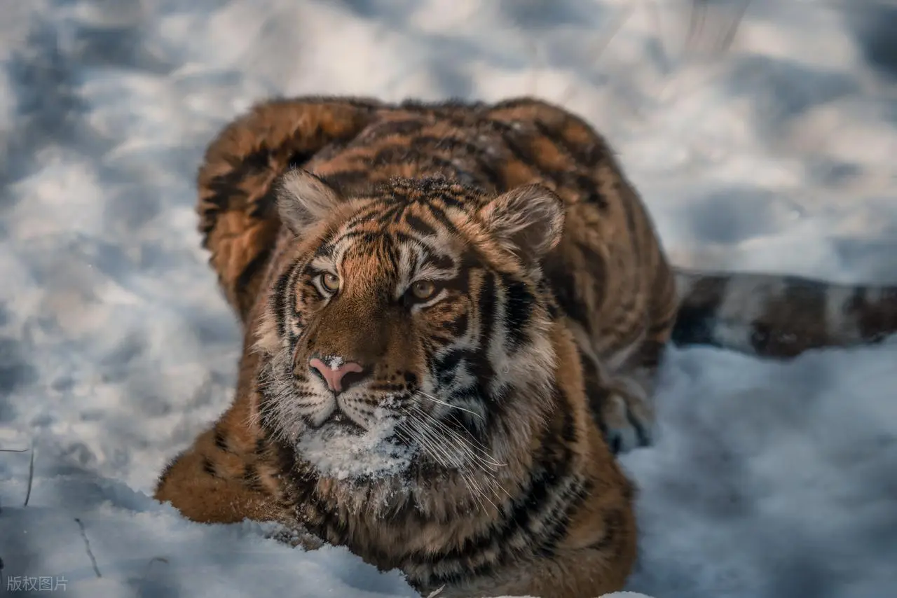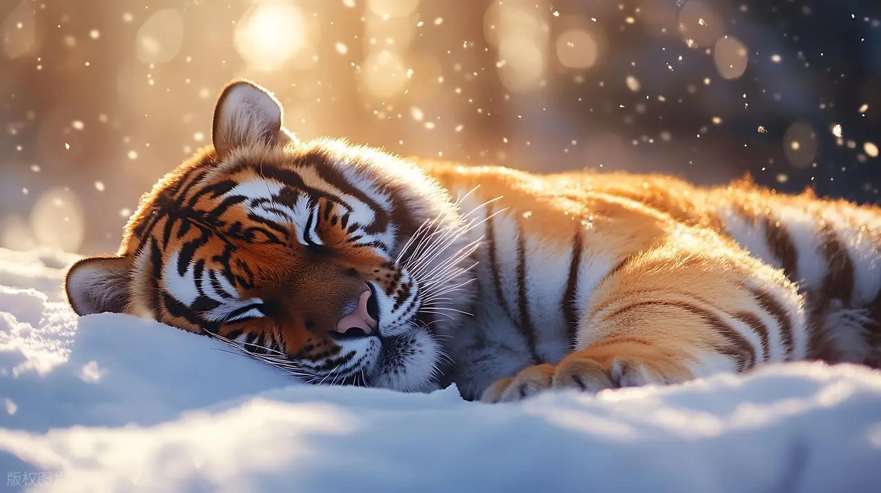 寒风卷着雪粒抽打白桦林,一只西伯利亚虎盘起身子卧在雪地里。它呼出的白气在零下40度的空气中凝成冰晶,身下的积雪却悄然融化成浅坑。