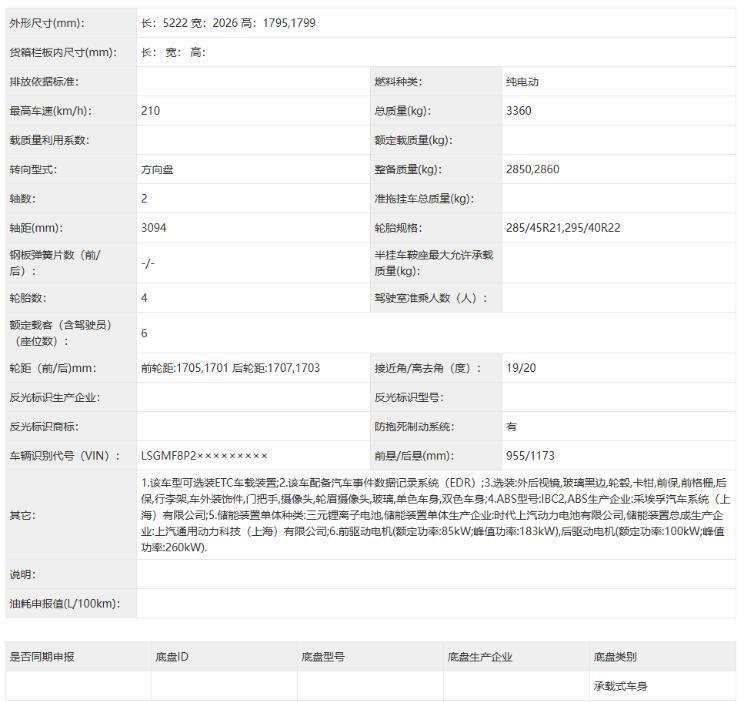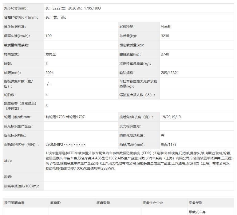 动力部分,国产版凯迪拉克VISTIQ先期申报了两种动力配置的车型。其中,单电机后驱版车型最大功率输出255kW,配备三元锂电池,极速可达190kph,轮胎规格为285/45R21。前后双电机四驱版车型,系统综合功率输出为183kW+260kW,极速可达210kph,轮胎规格分别有:285/45R21、295/40R22两种。