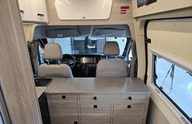 内饰方面,整车采用环保水性聚氨酯发泡保温材料,具有良好的保温性能。驾驶区隐私隔帘(环绕型)保证了驾驶区域的相对独立与私密。车内布局为横置双人床单侧拓展的四座设计,整体风格温馨舒适。高密度海绵床垫提供了优质的睡眠体验,主副驾驶超纤包覆提升了内饰的质感,抽拉式隐藏桌子则增加了空间的灵活性。