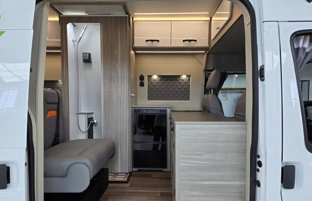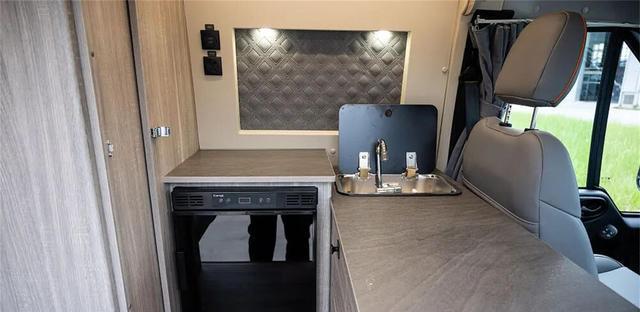 厨房区设施齐全,配备12V房车冰箱沧浪71L,可储存各类食材;水路系统包含水管、手动排污阀、低位放水阀、水位显示等,方便管理用水;燃油热水暖风系统保证了冬季的热水供应与车内温暖;还设有抽拉式外置厨房(柴油灶),让烹饪不再局限于车内空间。