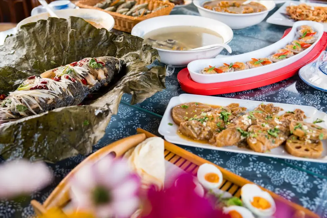 博兴县麻大湖有“北国江南 鱼米之乡”的称号,湖区各种鱼类资源丰富且肉质细嫩、味道鲜美,勤劳淳朴的湖区人以独有的方式做出了多种鱼宴。以“鳝鱼蒲芯”“面子椒”“水煎鲫鱼”“醋沏小鱼”等多种地域菜品组合而成的麻大湖宴席菜也成了滨州极具特色的地域美食之一。当然啦,还有琉榴圆芝麻香油味鸭蛋,蛋白似玉,蛋黄如红菊,刀切油落,浓浓芝麻香油味弥漫开来,满足味蕾的极致享受。