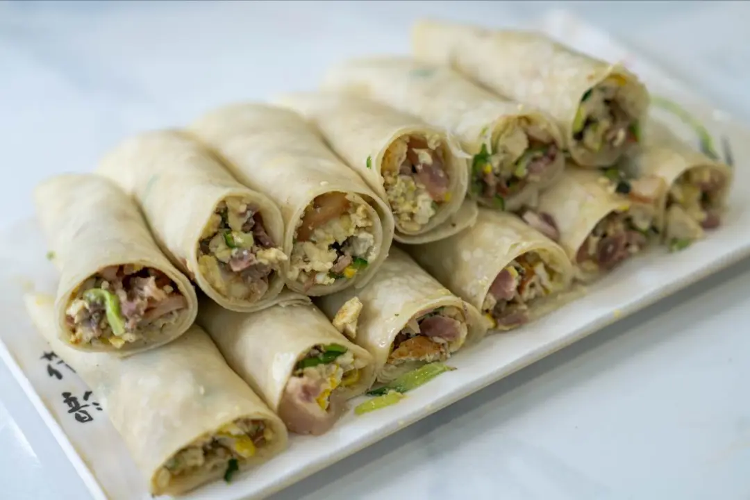 滨州锅子饼绝对是饼界“顶流”!这薄如蝉翼的饼皮,包裹着豆腐、鸡蛋、香菜的丰富内馅,一口咬下,外酥里嫩,简直是对味蕾的甜蜜暴击。据说这美味从清朝就开始圈粉,不愧是经得起时间考验的经典美食。