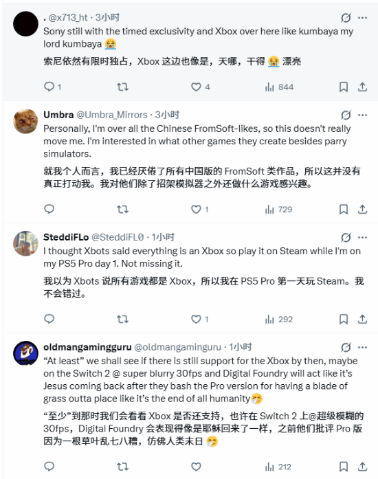 有人调侃 “索尼还在搞限时独占,Xbox 这边已经‘岁月静好’”,也有玩家调侃: “Xbox 玩家说万物皆可 Xbox,那我在 PS5 Pro 玩首发,PC 玩家也能同步玩”,更有玩家表示:“等 1 年后其他主机上线时,Xbox 说不定还在不在都不好说。”