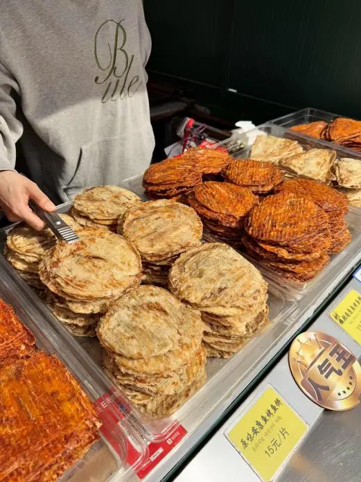超新鲜的现烤鱼片,吃起来很香,真的很赞!!全都是鱼肉,没有刺也没有淀粉,纯鱼肉的,一片比我手掌还大耶。