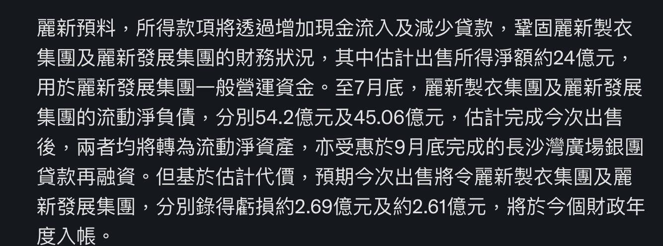 虽然出售中国建设银行大厦的五成股权之后,将会为林建岳旗下的集团带来一大笔丰厚的现金收入,以缓和负债压力,不过林建岳名下集团的负债额并不低。而截止至7月,林建岳旗下的丽新制衣以及丽新发展的流动净负债额分别为54.2亿以及45.06亿,合计将近百亿债务,压力并不轻。