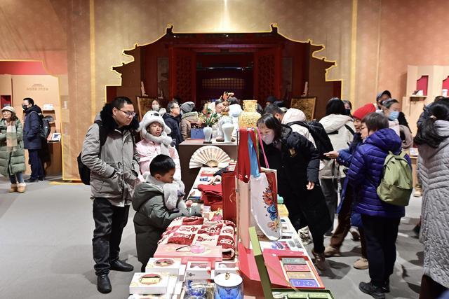 “这个小马的背包卖么”“今年的生肖邮票选了哪件文物”“你戴的围巾是年货么”……故宫午门东北崇楼的文创展示空间,工作人员一边布置年货展台,一边不断回答观众提问。