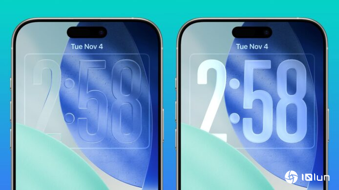 iOS 26.2为锁定画面加入Liquid Glass滑动条,让用户精确调整时钟透明度效果。选取“Glass”时钟样式后,滑动条可即时调整时钟外观,从接近完全透明到雾面质感之间自由切换。这项功能适用于所有字体选项,比较iOS 26.1“Tinted”开关只设有两种选择,新滑动条让用户拥有更细致自订空间。系统保留“Solid”开关选项,用户仍可完全关闭Liquid Glass效果,改用不透明时钟。