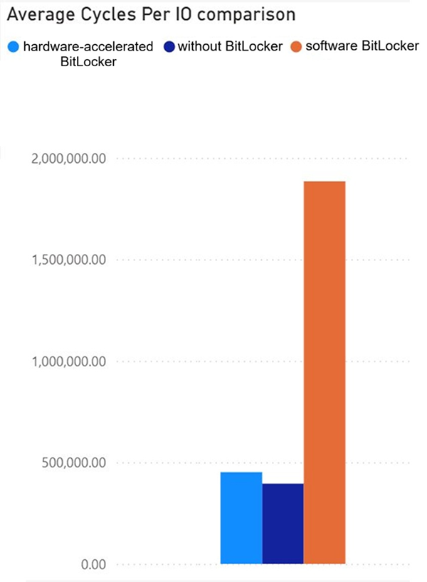 硬件加速的 BitLocker 相比软件 BitLocker 平均可节省 70% 的 CPU 周期资源,节省的 CPU 资源可以延长电池续航时间。