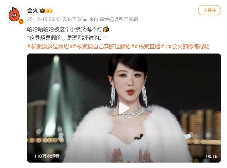 在海南的温热海风中,杨紫一句带着笑意的坦白,瞬间让直播间外的互联网凉快不下来了。12月19日的APM珠宝海口直播中,她身穿一件白色毛绒外套,一边因高温略显不适,一边却不忘对着镜头反复“澄清”:“这身貂是假的,是聚酯纤维的!”临了还俏皮补上一句:“假貂先走啦!”这波操作,迅速从直播间火遍全网,被网友封为“又耿直又高级的明星发言范本”。