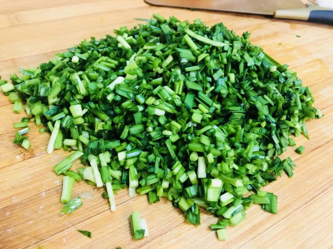 步骤二:韭菜洗净后,切碎。