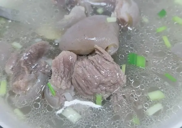 步骤四:开盖加当归煮8分钟。加盐、鸡精。出锅加葱花即可。