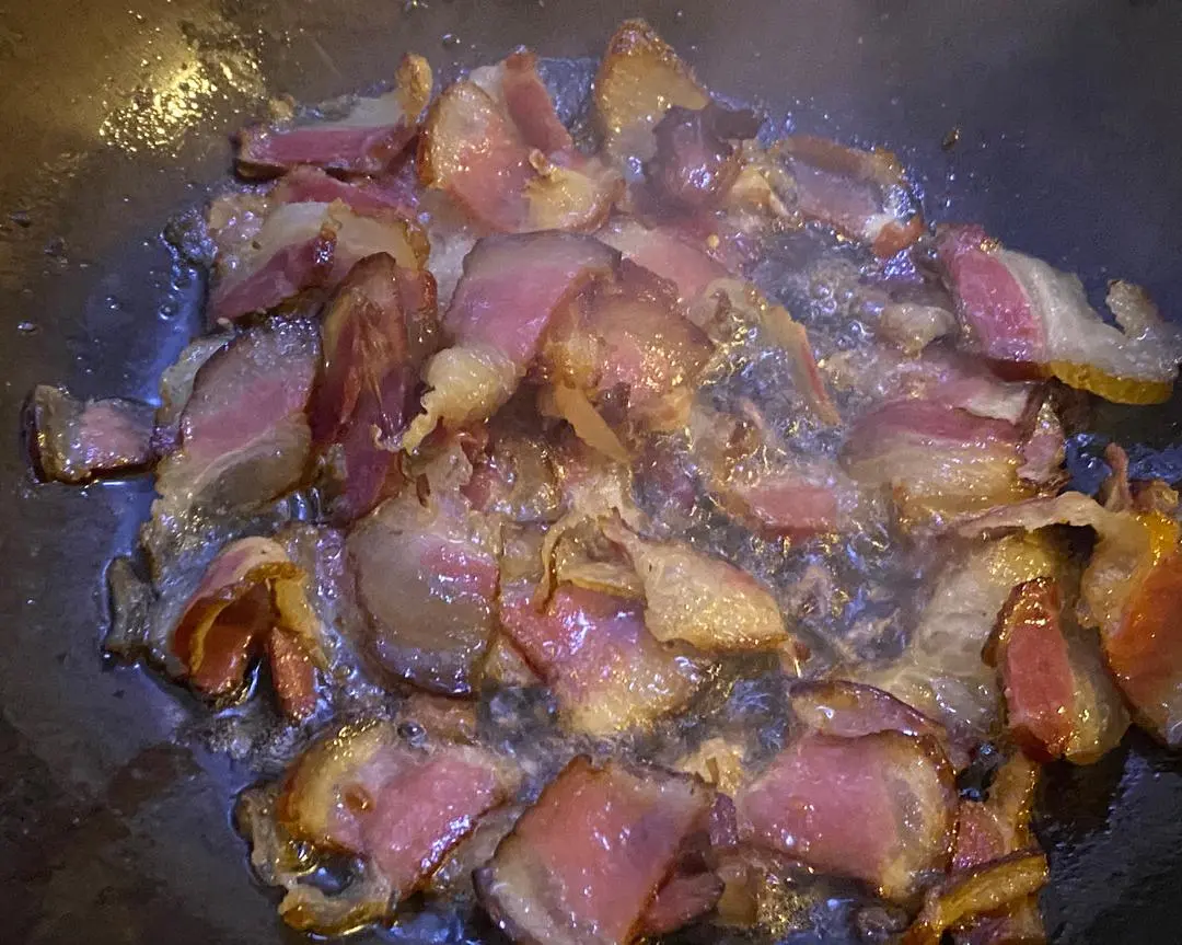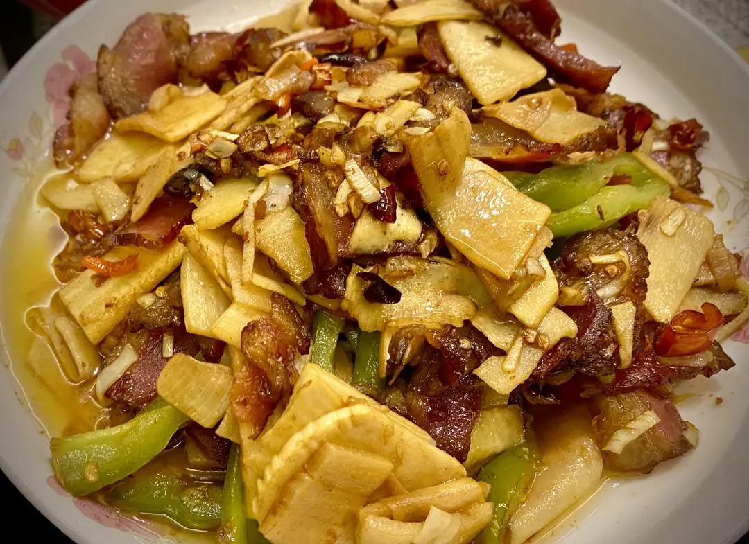 【食材】:腊肉、冬笋、小米辣、大蒜、食盐。
