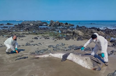 秘鲁海岸近一个月有连续两只罕见的”深海巨怪”搁浅在岸上,引起海洋专家的担忧。