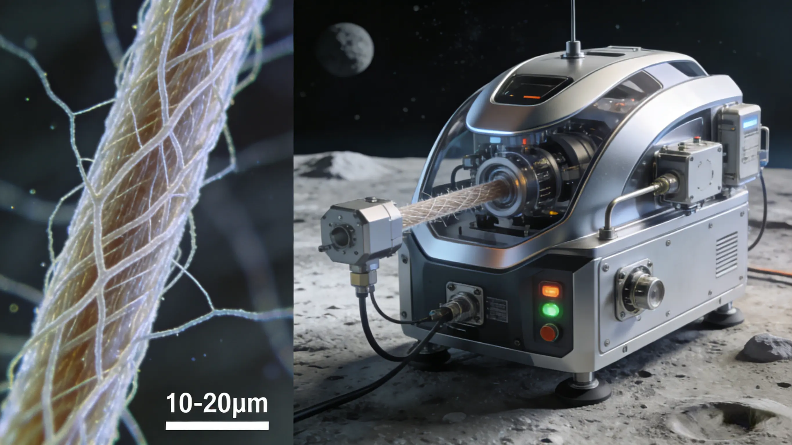 与此同时,东华大学团队依托嫦娥五号带回的月壤样本,攻克高温熔融与真空牵引技术,成功制备出10-20微米的超细连续纤维,并研发出适配月球高真空、低重力环境的自动成纤设备,可支撑月面复合材料制造。