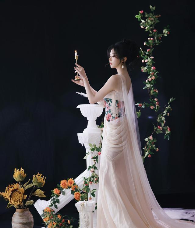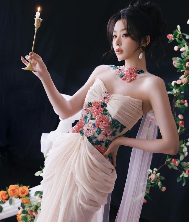 孔雪儿最新释出的繁花礼裙大片惊艳全网:裸粉色抹胸礼裙搭配立体刺绣繁花,颈间同系列花簇颈饰相映成趣,手持烛台的造型宛如从古典油画中走出的花神,柔纱垂坠的设计勾勒出曼妙身姿,清冷又妩媚的气质将“氛围感美人”诠释到极致。这抹温柔又明艳的造型,不仅是她时尚表现力的又一次爆发,更藏着她从爱豆转型演员的成长脉络。