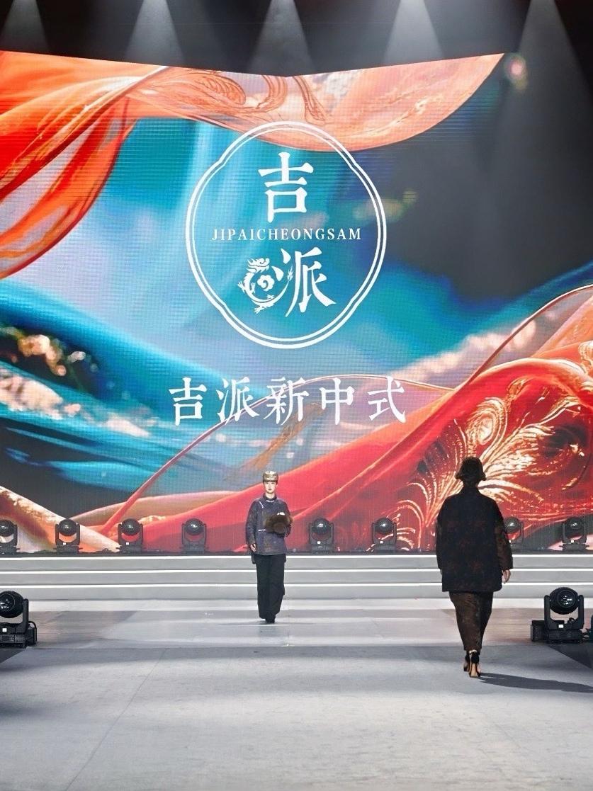 本次时装周以“文化+创意+产业”为核心逻辑,构建起“非遗传承+民俗创新+校园新锐”的多元发布矩阵。吉派新中式非遗民族服饰发布会率先登场,将多项非遗技艺融入现代设计。刺绣细腻纹样与主题色调碰撞,人参造型盘扣点缀其间,让博物馆中的非遗技艺化作可穿可戴的生活美学。设计师巧妙融合服饰版型与镶滚工艺,祥云、牡丹等传统元素通过绣、镶、盘、画等技法呈现,使每件作品都成为承载多民族文化交融的移动艺术品。