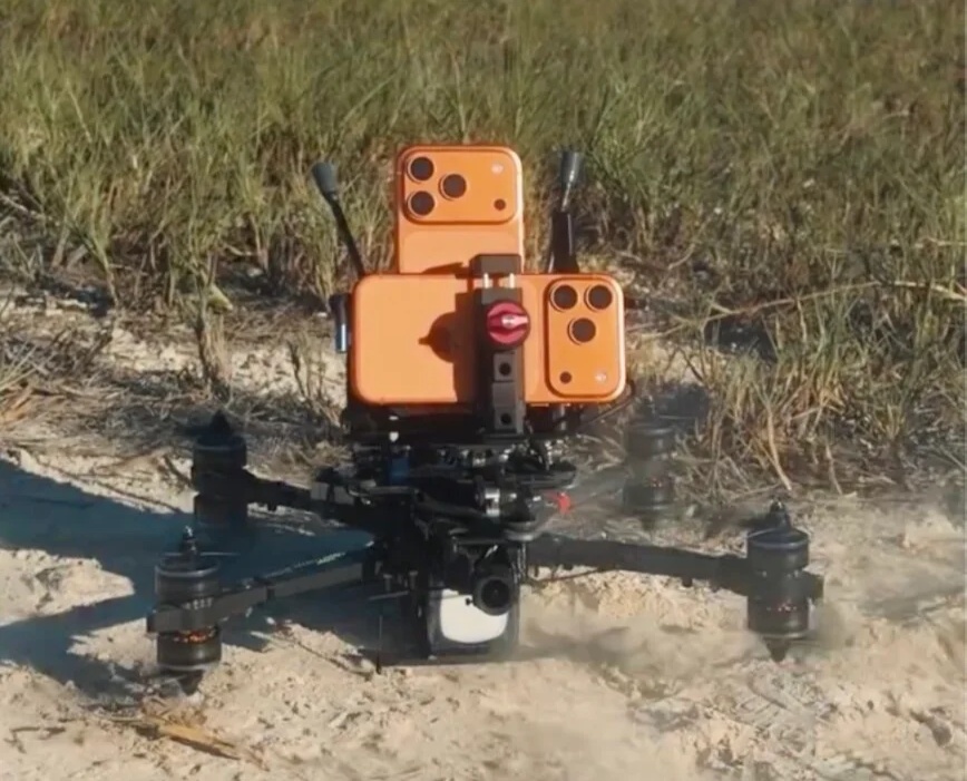 为记录这一壮举,制作团队不仅在浮岛、摩托车及运动员身上安置了拍摄设备,还开创性地将两台 iPhone 17 搭载于 FPV(第一人称视角)无人机上,紧随贝雷曼在空中穿梭,全程以 ProRes 4K 分辨率配合 Log 模式录制,确保了电影级的画面质感。