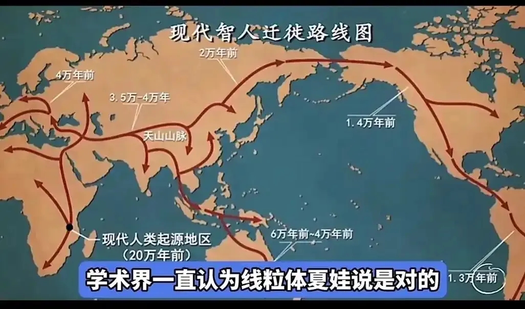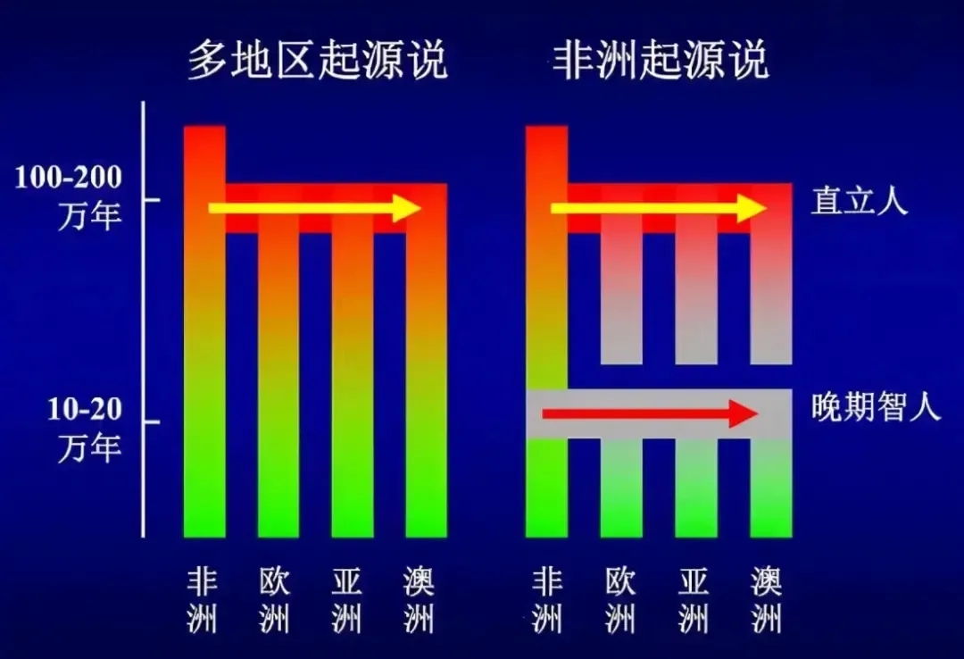 他们认为,非洲人在冰川期结束后,大约6万年前开始前往东南亚,由南至北进入中国大陆,取代了中国大陆上冰川期前的古人类,成为现代中国人的祖先。