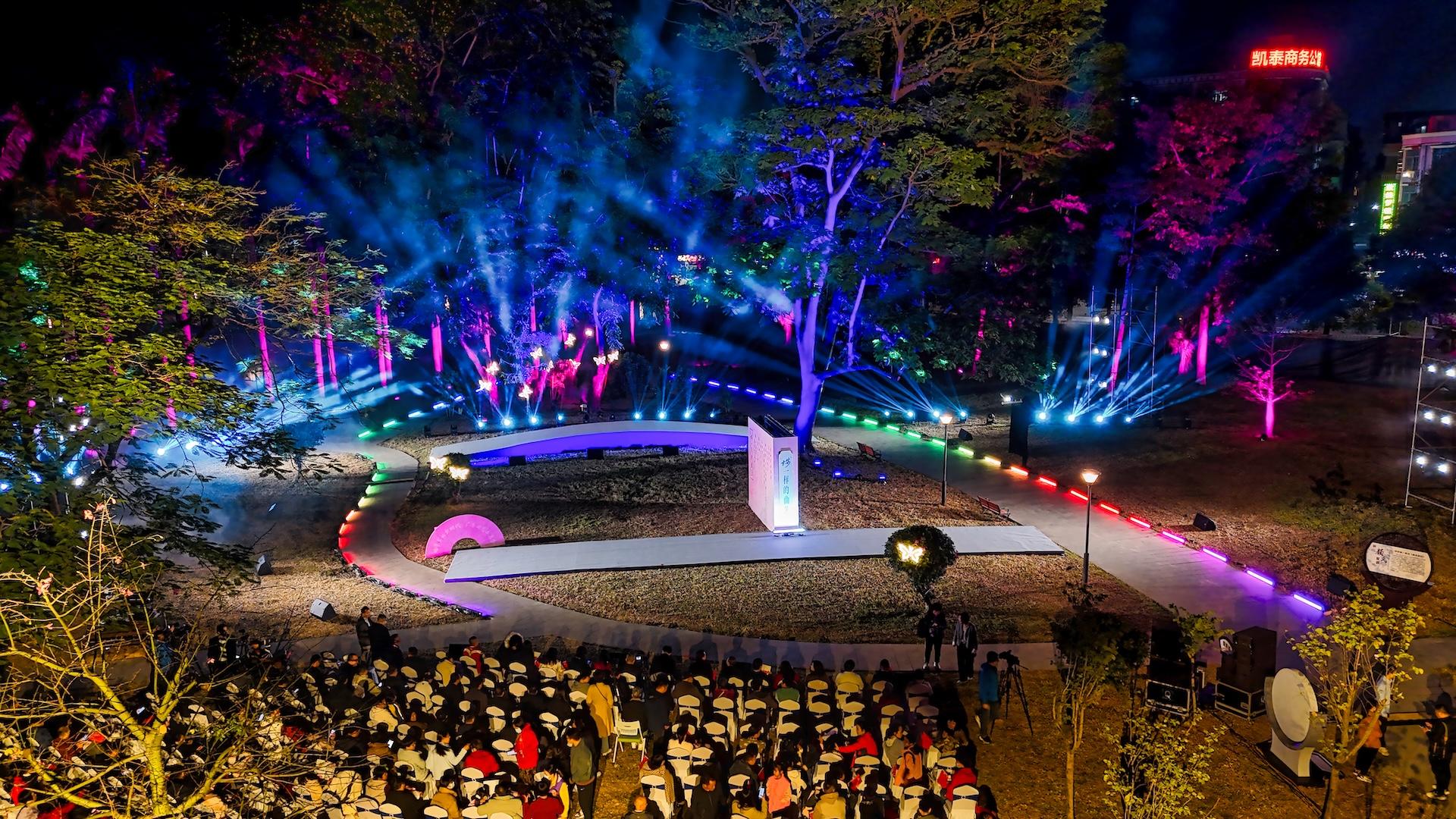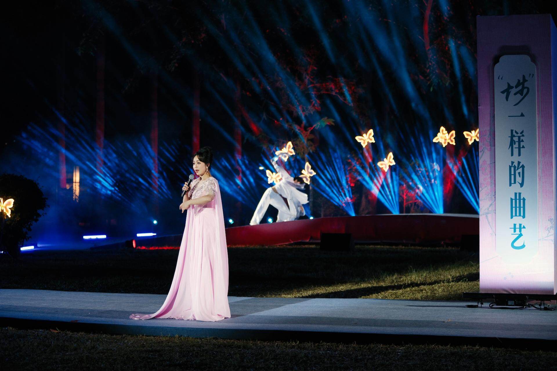 本次演出打破传统剧场的镜框式舞台,文化广场公园小树林、绿草坪、曲径幽径皆为舞台,与灯光呼应,化身沉浸式叙事场景,现场观众落座其中。“零距离”的舞台体验,让表演者与观众共同沉浸在全新的互动氛围中,是探索国家非遗粤曲创造性转化、创新性发展的一次生动实践。