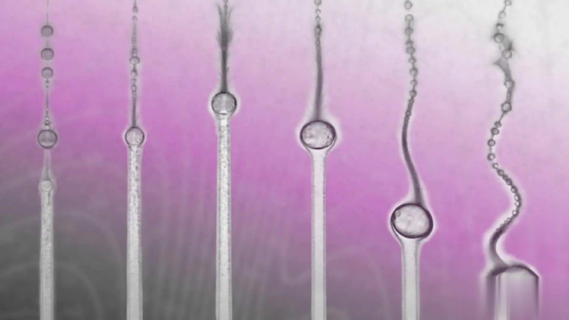 借助高速摄像机观察油滴在流动条件下的行为,他们发现这些微滴能够抵抗水流、保持静止甚至逆流而上。比斯万格在新闻稿中阐释:"使油滴保持静止的力源于其上下两端的表面张力差。"油滴悬停的平衡状态取决于其尺寸与位置、流速以及流道内液体性质等多种因素。