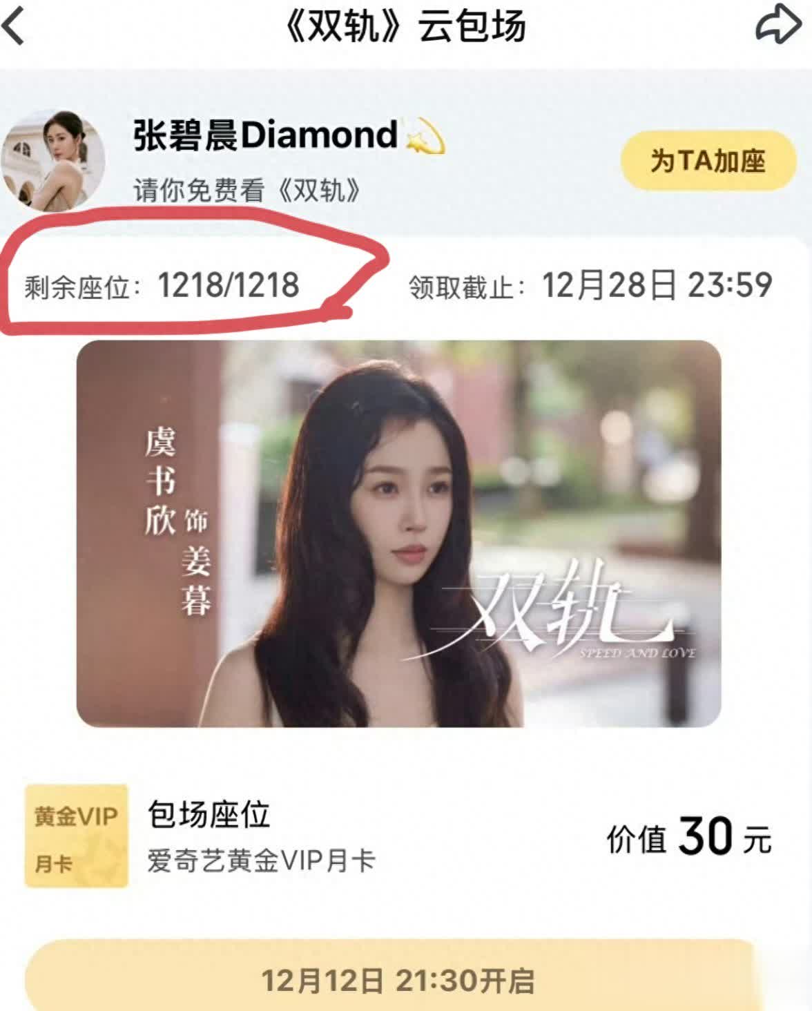 圈内这么卷了吗?张碧晨给虞书欣新剧包场1218份,歌手也有任务?