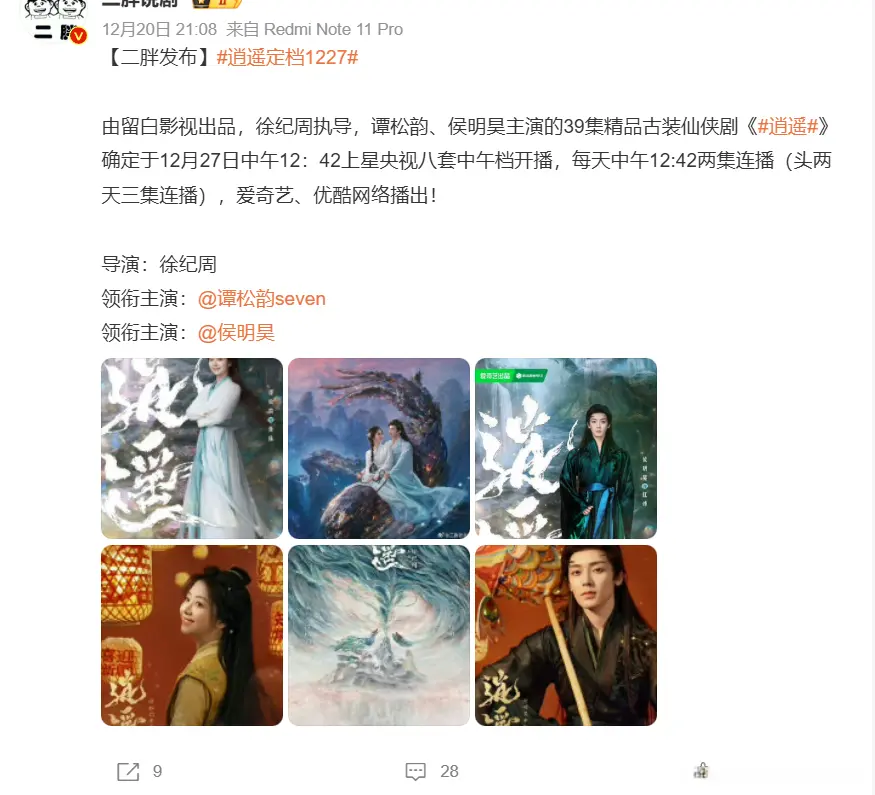既然《逍遥》能够上星播出,那也证明内部对于这部作品还是很看好的。12月27日刚好是周末,从首波收视也能推测后续走向。