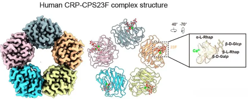 图1.C反应蛋白与肺炎链球菌23F荚膜多糖复合物结构