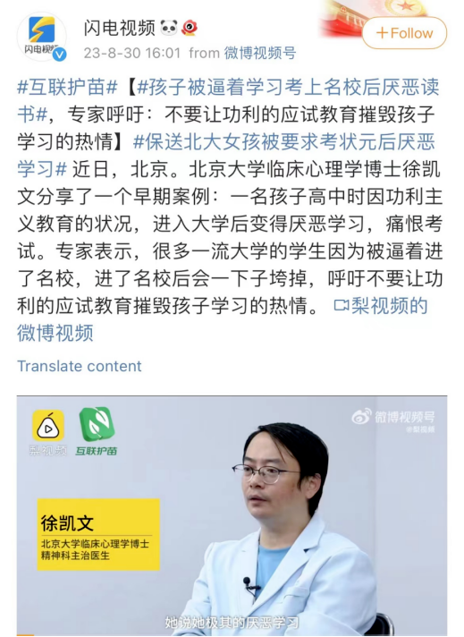 北京大学临床心理学博士徐凯文分享过一个案例: