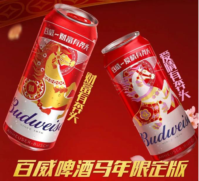 还有百威啤酒品牌推出马年限定,依然风格延续之前,罐身印着骏马,并配上“财富有奔头”、“爱情有奔头”等 4 款文案,将解锁新年好奔头的福气带给用户,过新年最讲究好彩头。