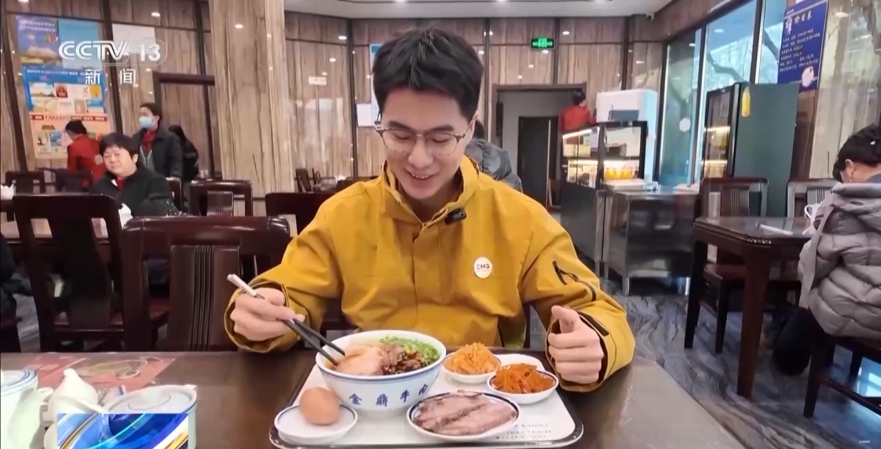 总台记者 崔林欣:我现在是在兰州市的一家牛肉拉面馆里,我身旁有不少人现在正在吃面。在当地,有的人会在早上6点起床,来吃一碗“头汤”。