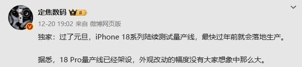 传iPhone 18最快过年前落地生产 元旦后测试量产线
