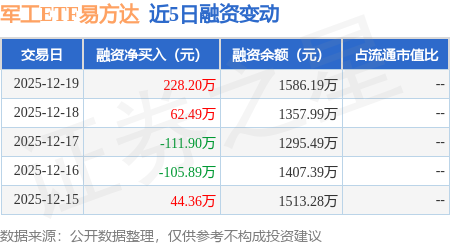 军工ETF易方达:12月19日融资买入381.34万元,融资融券余额1586.19万元