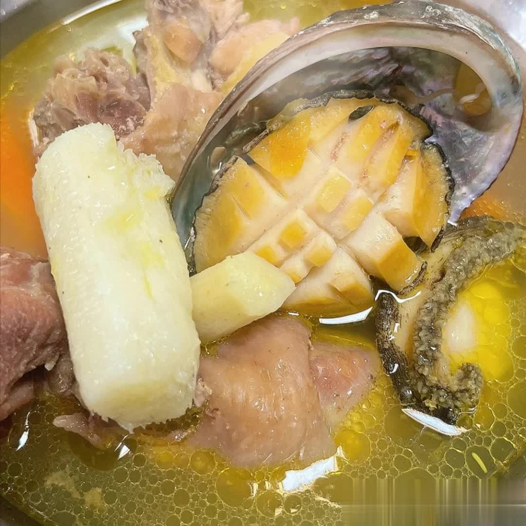 3.再加入适量清水,没过食材即可,中小火炖煮1个小时左右,再把鲍鱼清洗干净放入炖锅,再炖煮半个小时,加入适量食盐调味即可出锅。