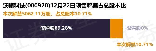 证券之星消息,根据市场公开信息整理,沃顿科技(000920)于12月22日将有5062.11万股限售股份解禁,为公司定向增发机构配售股份,占公司总股本10.71%。(本次数据根据历史公告整理得出,实际情况以上市公司最新公告为准)本次解禁后,公司还有2.25万股限售股份,占总股本0.0%。具体如下图所示: